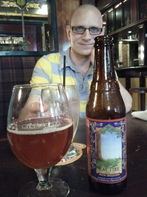 Actually he was framed. He's drinking the water. The Fat Tire is mine. All just another trip to the pub.