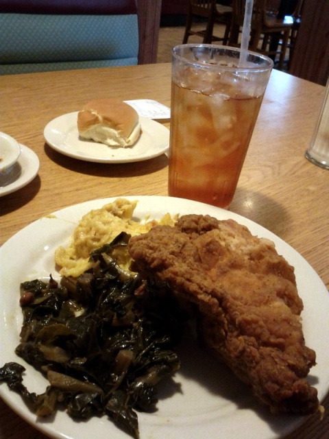 Pit stop in Columbia, South Carolina: fried chicken, collards, squash casserole, iced tea. Best restaurant fried chicken I ever had.