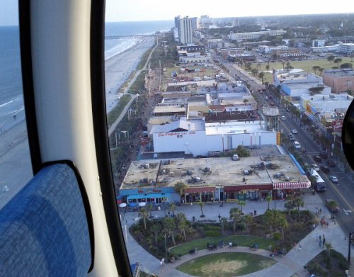 Image #3: This is the beachfront side of the store, plain and retro looking. On the top, one can see a little of a house sitting up there. I imagine some of the founding family still lives there. In the right side of the image, you can see the Myrtle Beach SkyWheel, which is the tallest Ferris wheel east of the Mississippi. The next picture was taken from the SkyWheel.