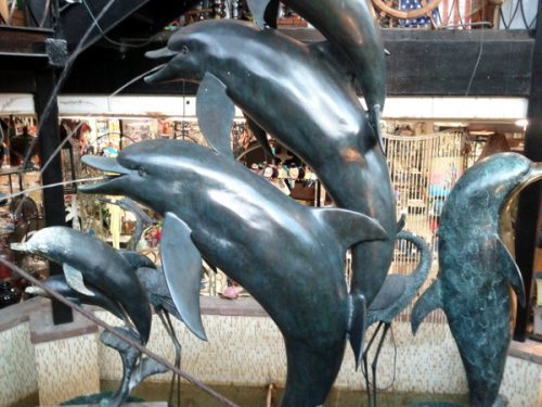 Image #5: a metal dolphin fountain inside of the store that is at the base of the glass tower. I love 'em.