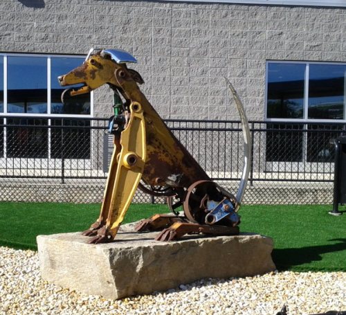 I like it. I am a big fan of mechanical / industrial sculptures. I have a picture of horse made out of motor bike parts. Link coming as soon as I get home 🙂