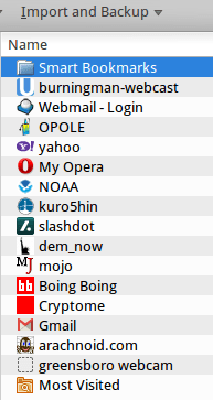 My bookmarks toolbar listing. Not exactly edifying.