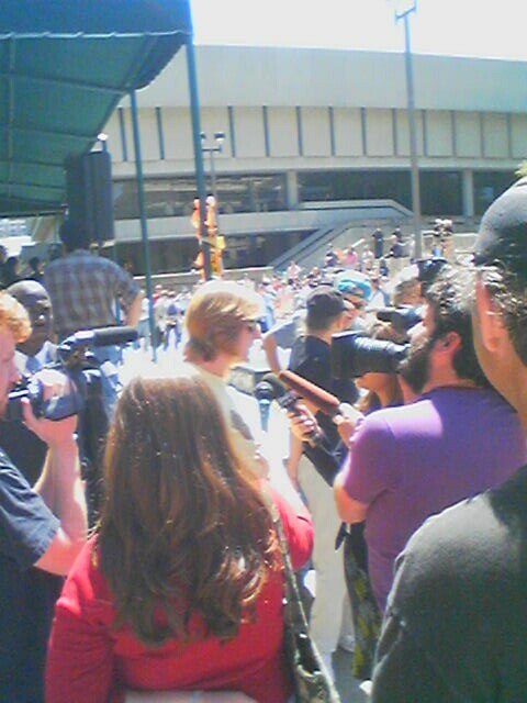 Downtown Greensboro, NC. In center is Cindy Sheehan. There was some event that day in the plaza, and she was one of the speakers.
