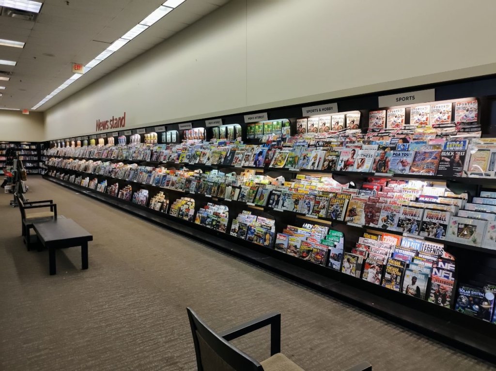 The abandoned magazine racks at Books-A-Million.